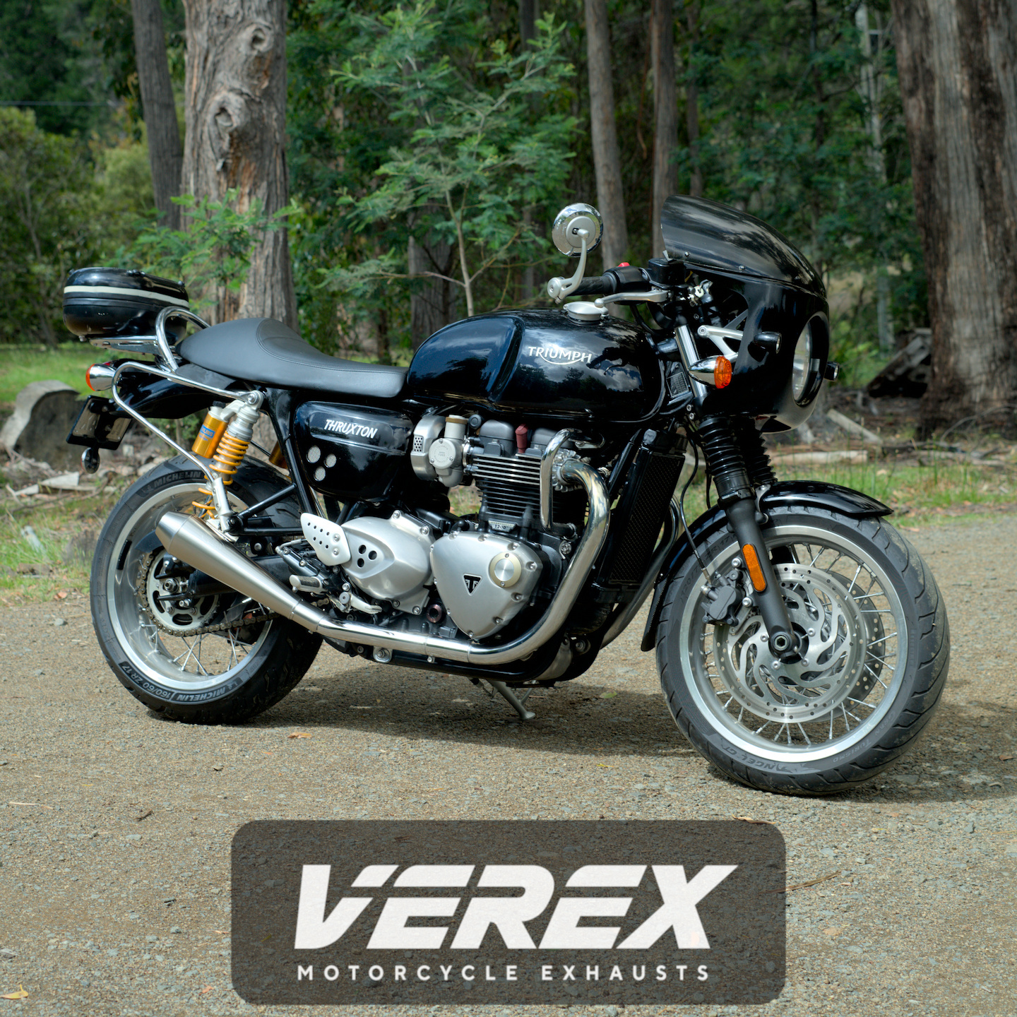 Add classic character and rich sound to your Triumph Thruxton 1200, Thruxton R, or Thruxton RS with these VEREX Reverse Cone Mufflers, handcrafted in Tasmania for a perfect bolt-on fit.